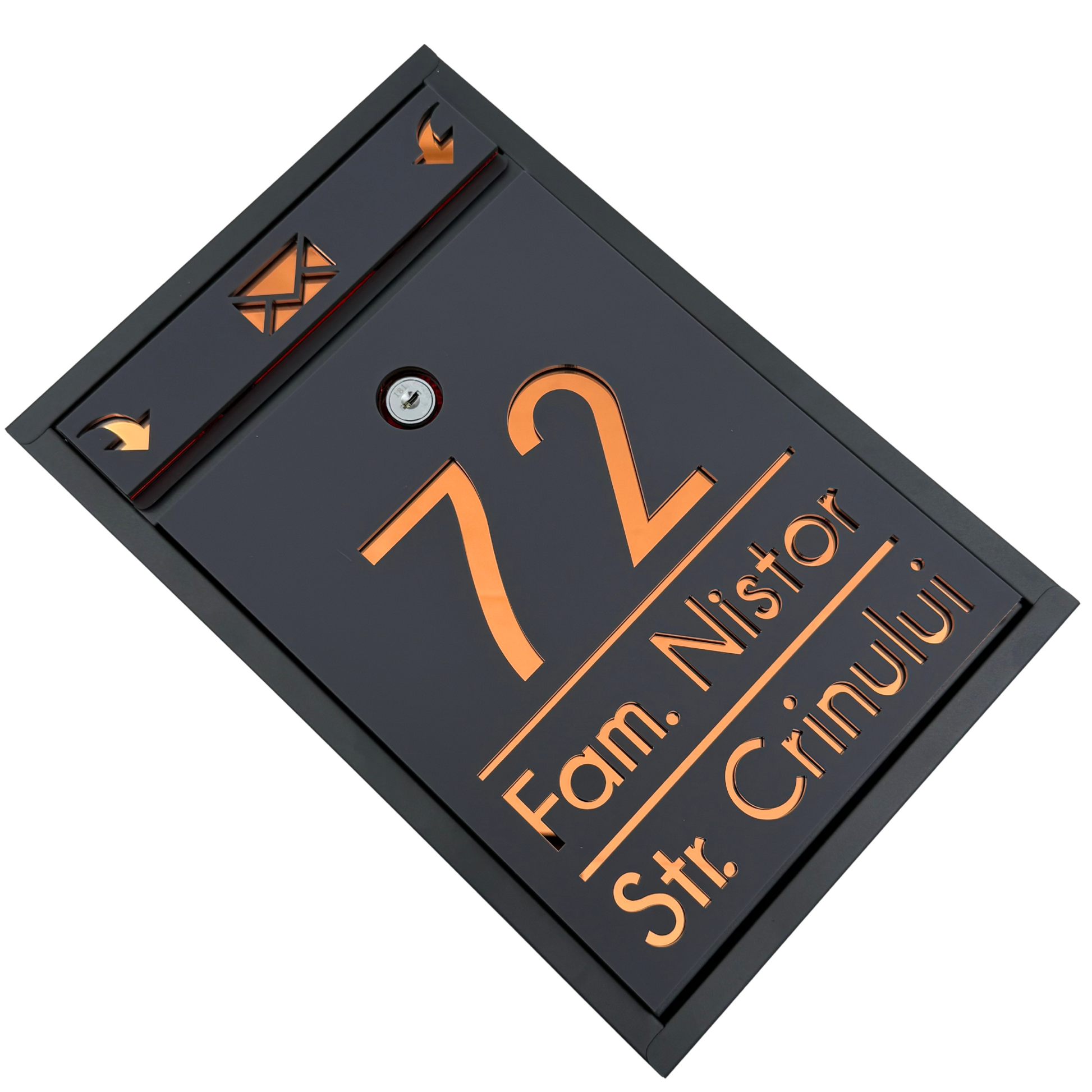 CUSTOM MAIL BOX - Satin Grey Anthracite Copper Mirror - 32x22×9 cm