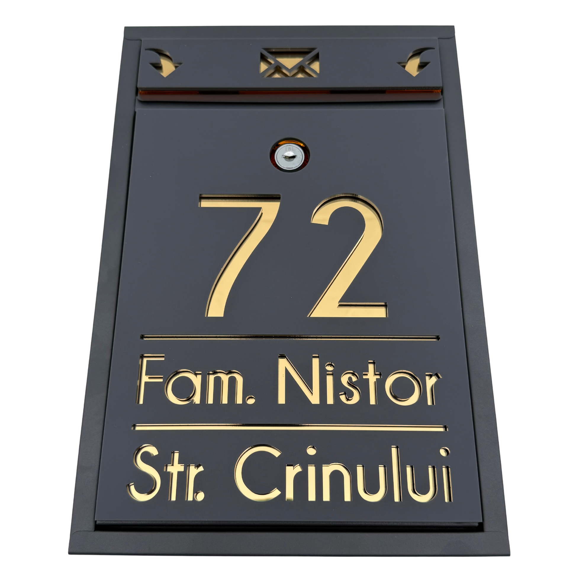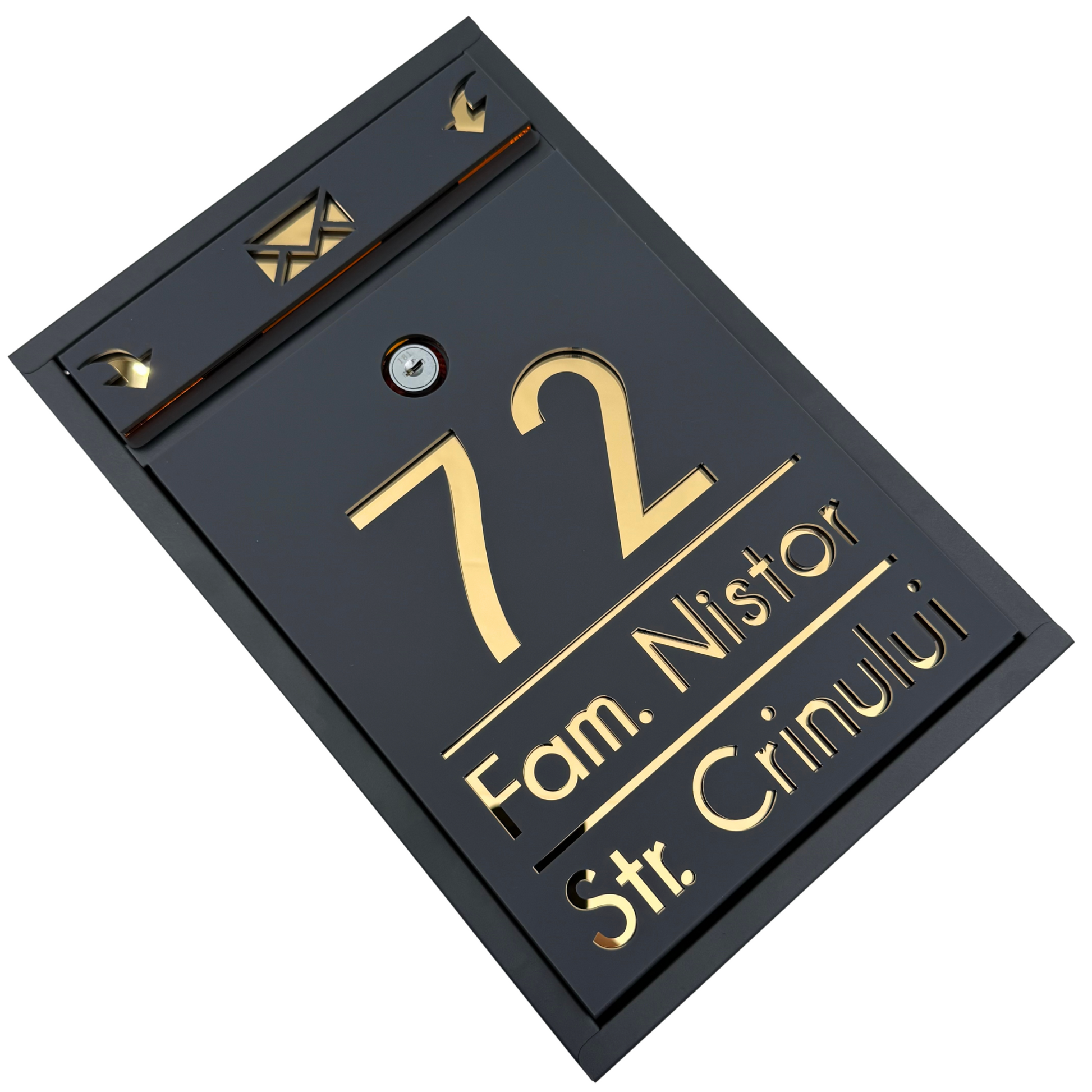 CUSTOM MAIL BOX - Satin Grey Anthracite Gold Mirror - 32x22×9 cm