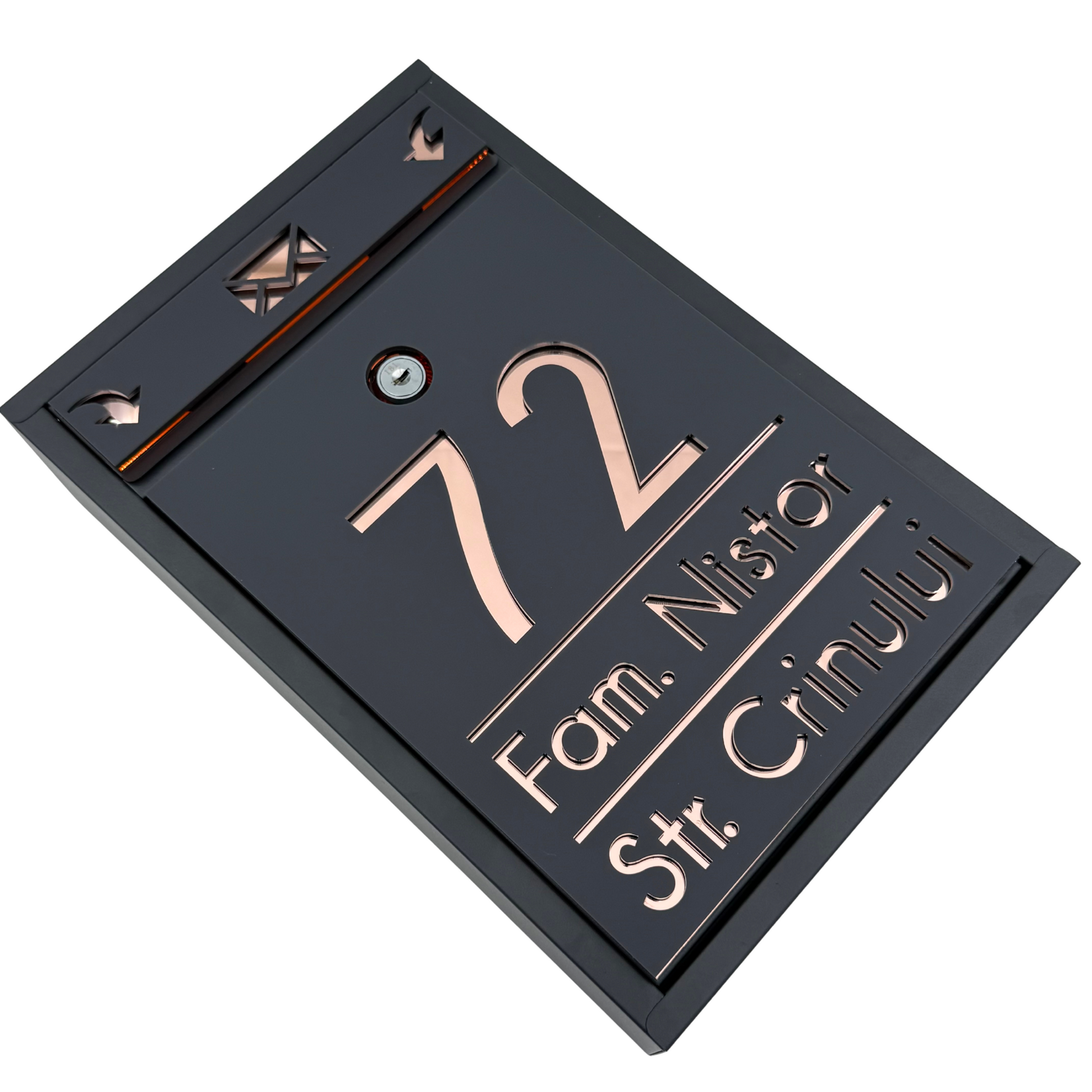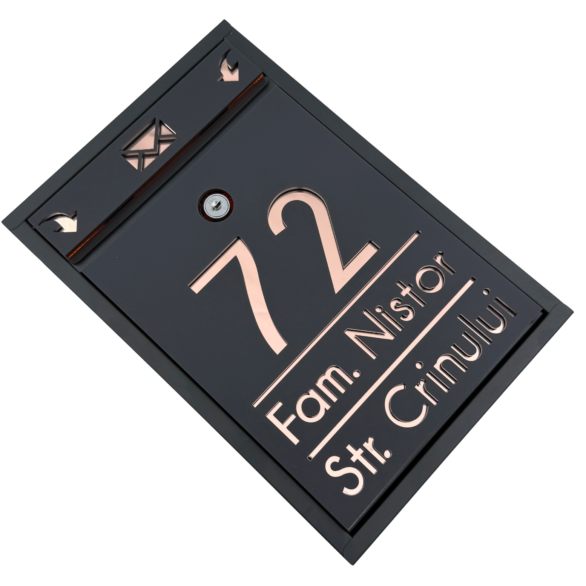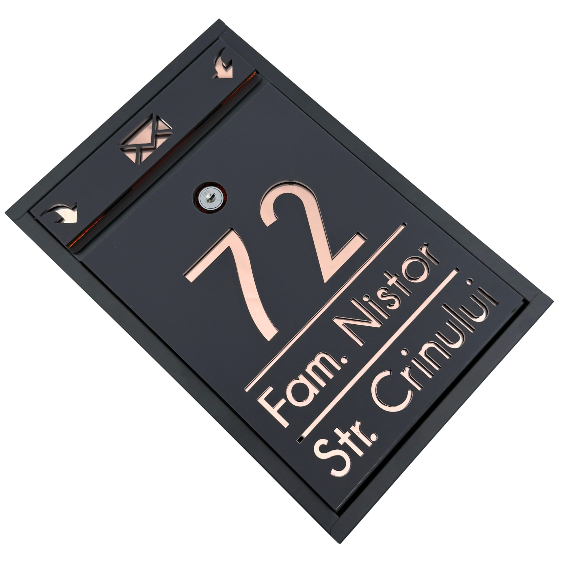 CUSTOM MAIL BOX - Satin Grey Anthracite Rose Gold Mirror - 32x22×9 cm