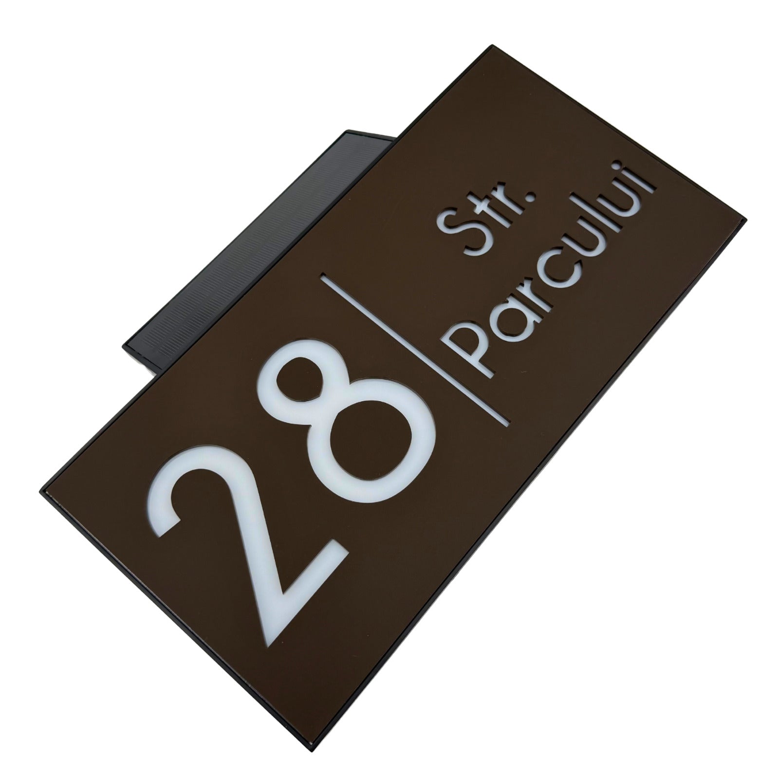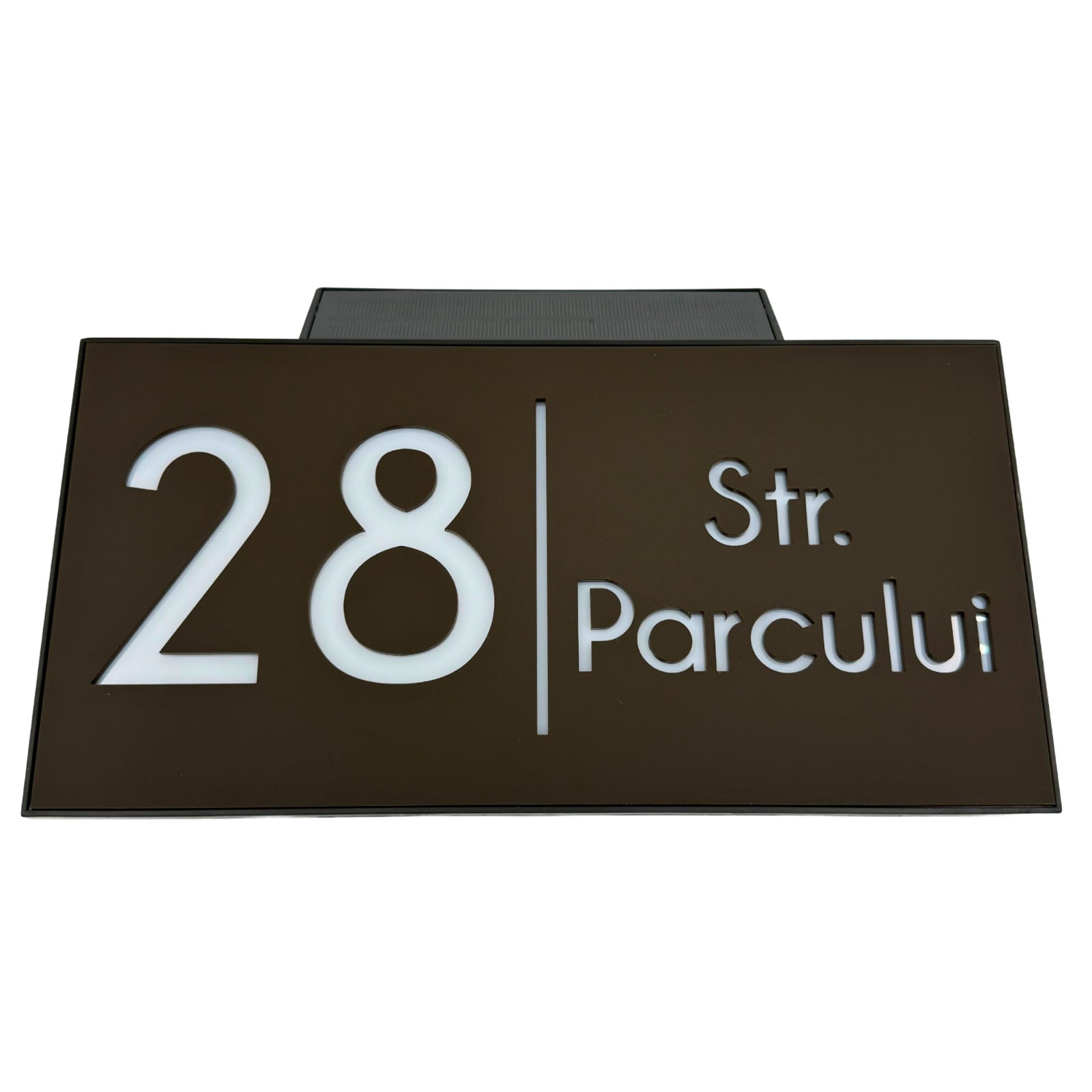 PREMIUM HOUSE NUMBER - Brown Satin Solar Led Case - 30×15 cm