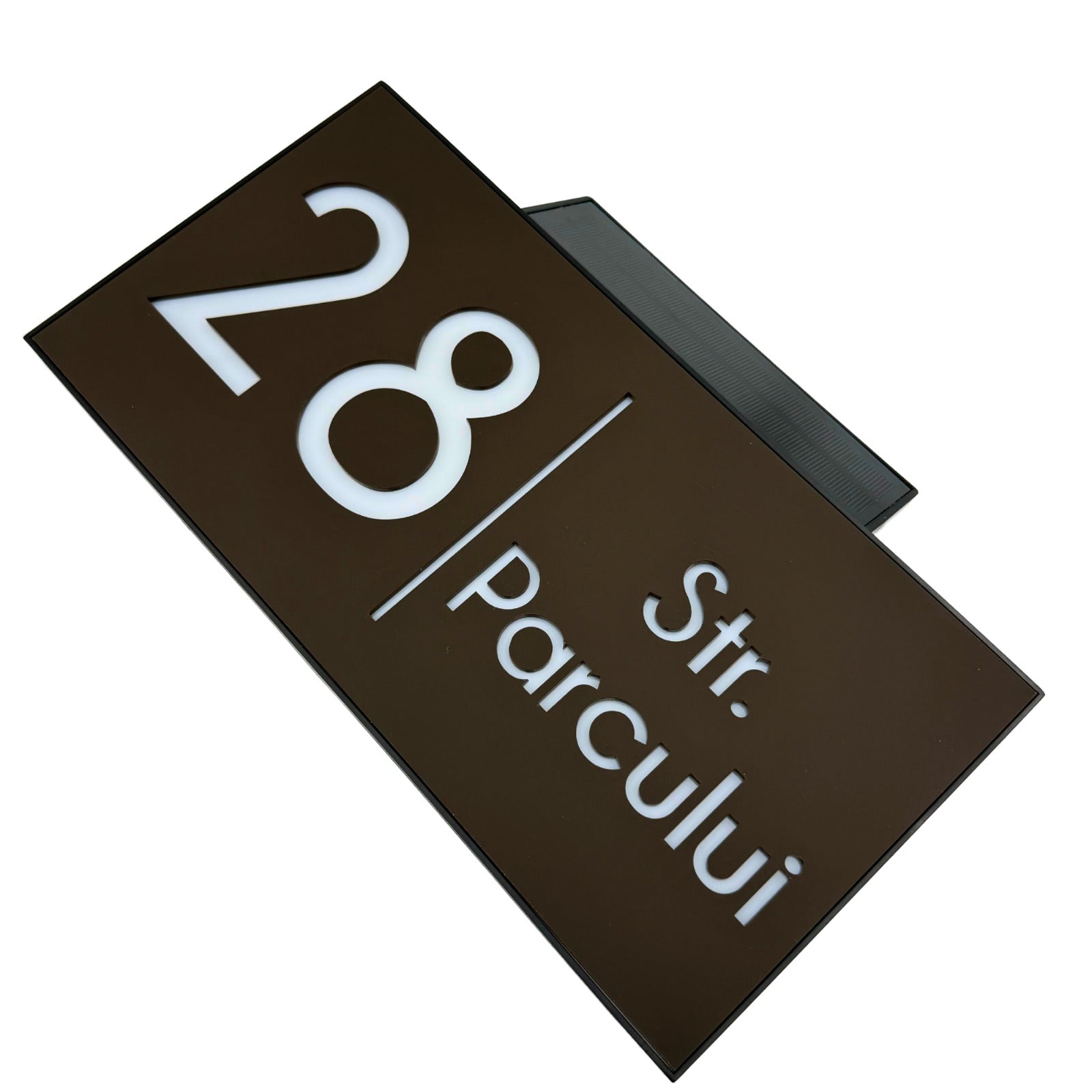 Premium house signs with number and address. Introducing our exclusive house number and address sign to the world of refinement and luxury. Crafted with care and attention to detail, this exceptional piece is a true work of art for your home. Our luxurious sign is made of the highest quality plexiglass, with a thickness of 6 mm, to provide you with unparalleled durability and strength. Each number and address is engraved with precision and care, to create an impressive and sophisticated visual effect. Choose our exclusive house number and address sign and turn your house or fence into a true work of art. With a luxurious design, this piece will add value and style to your home, reflecting your exceptional taste and personality.