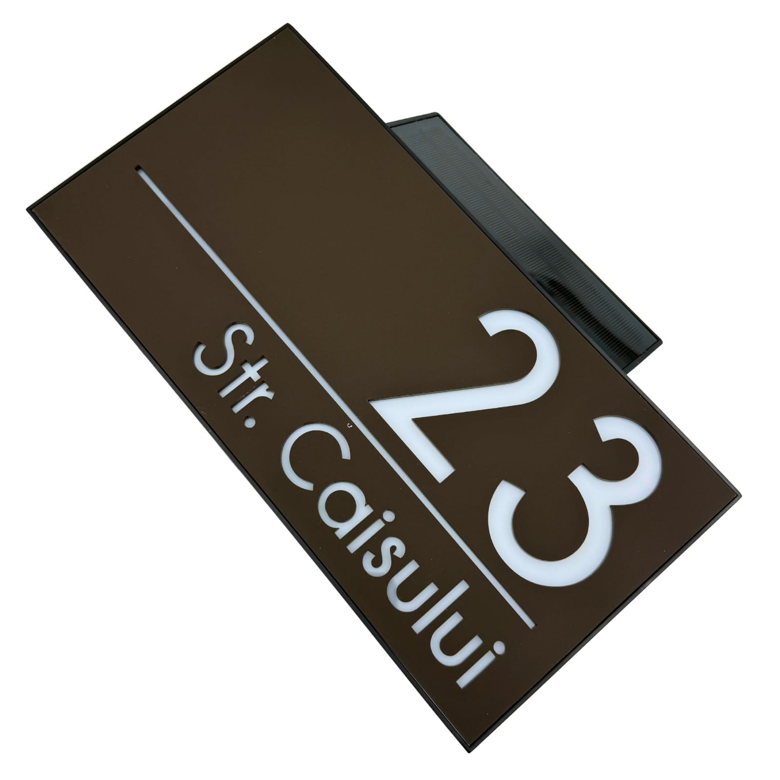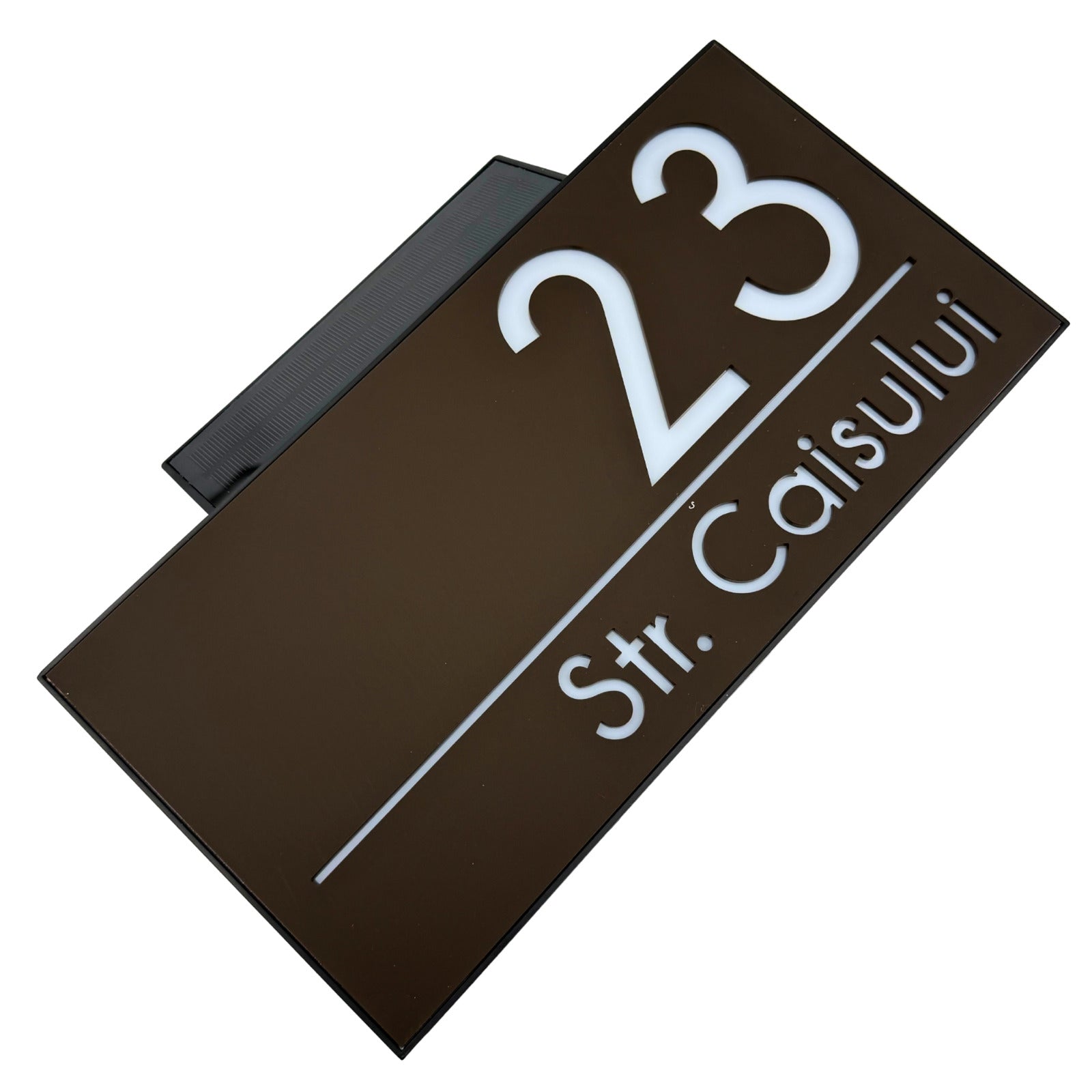 PREMIUM HOUSE NUMBER - Brown Satin Solar Led Case - 30×15 cm