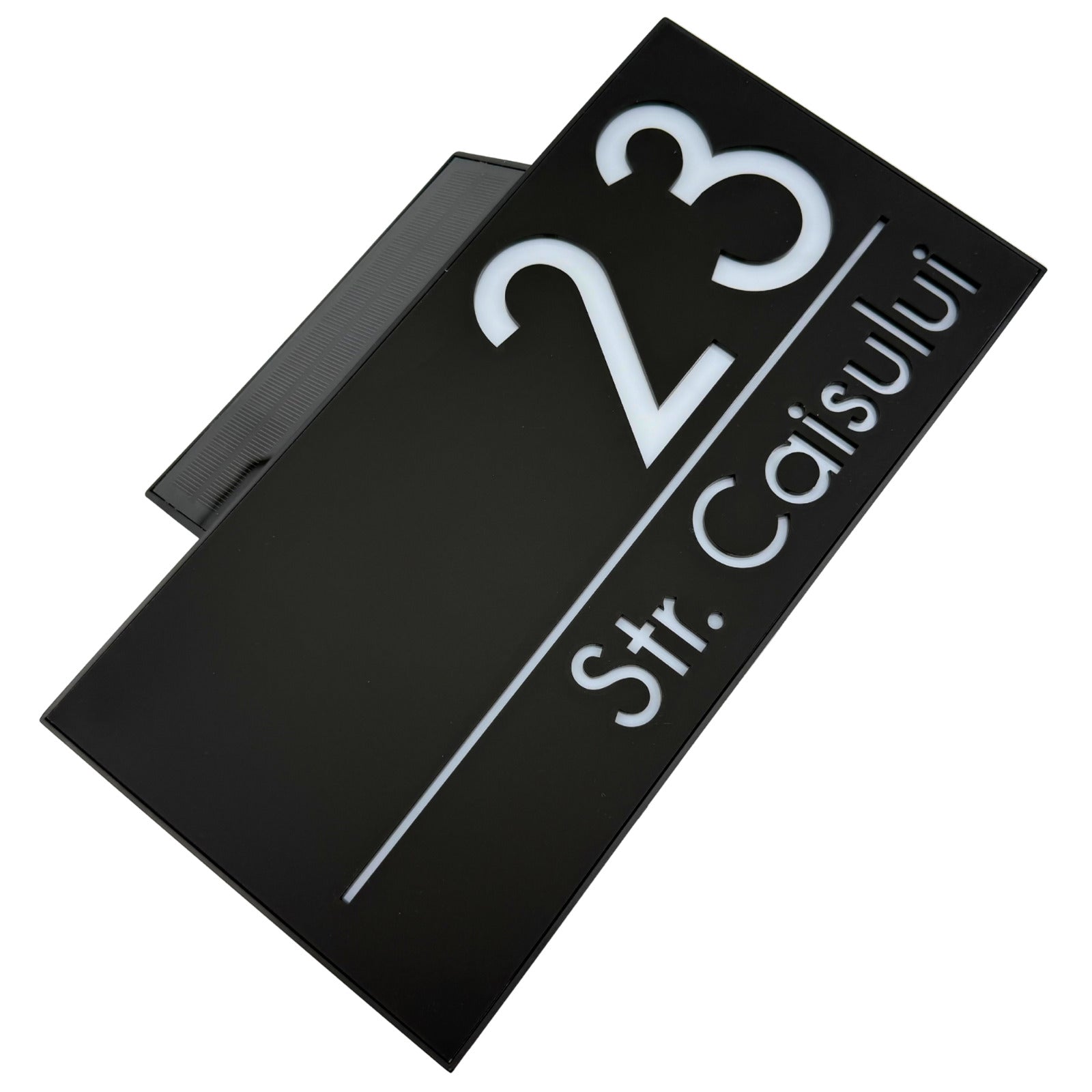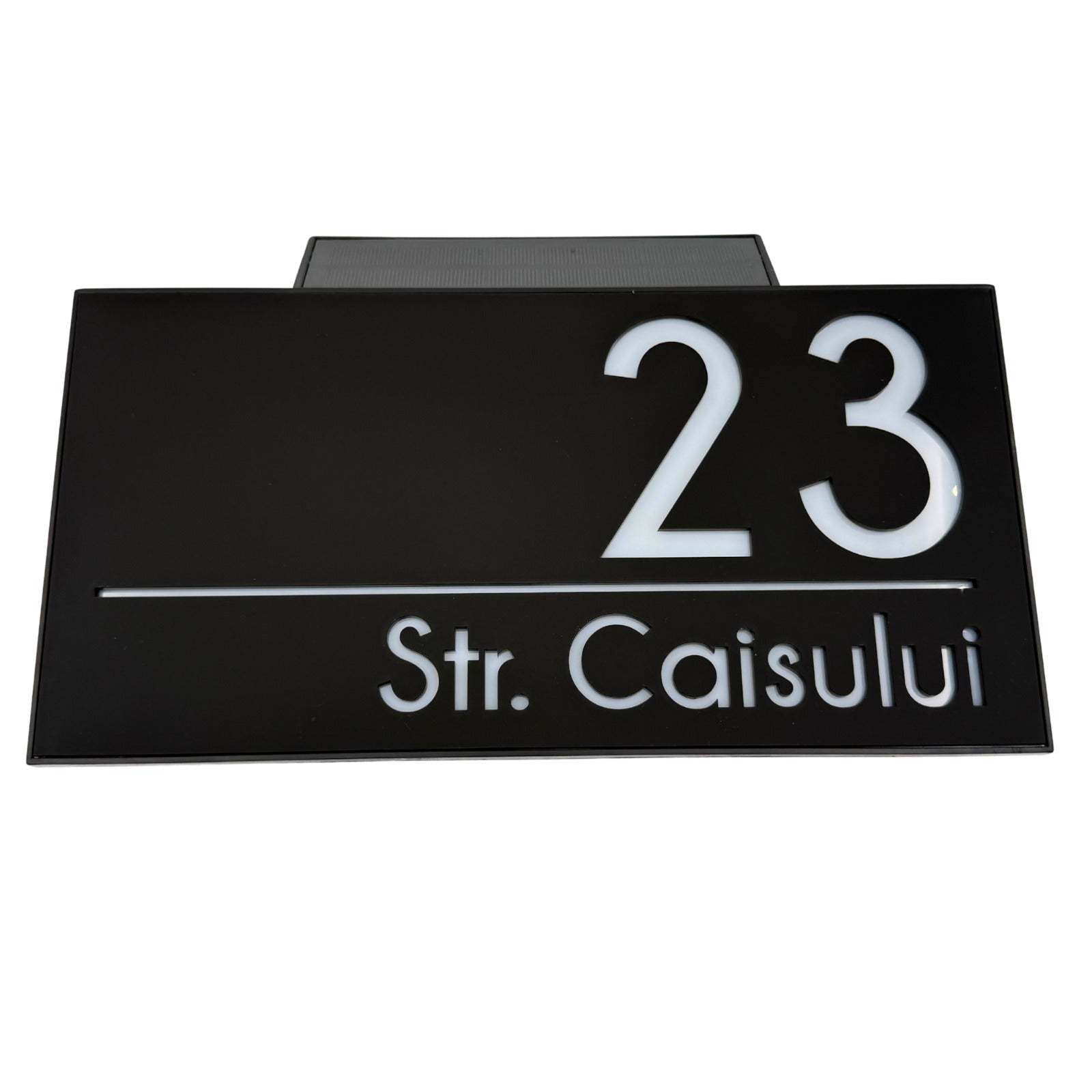 PREMIUM HOUSE NUMBER - Satin Black Solar Led Case - 30×15 cm