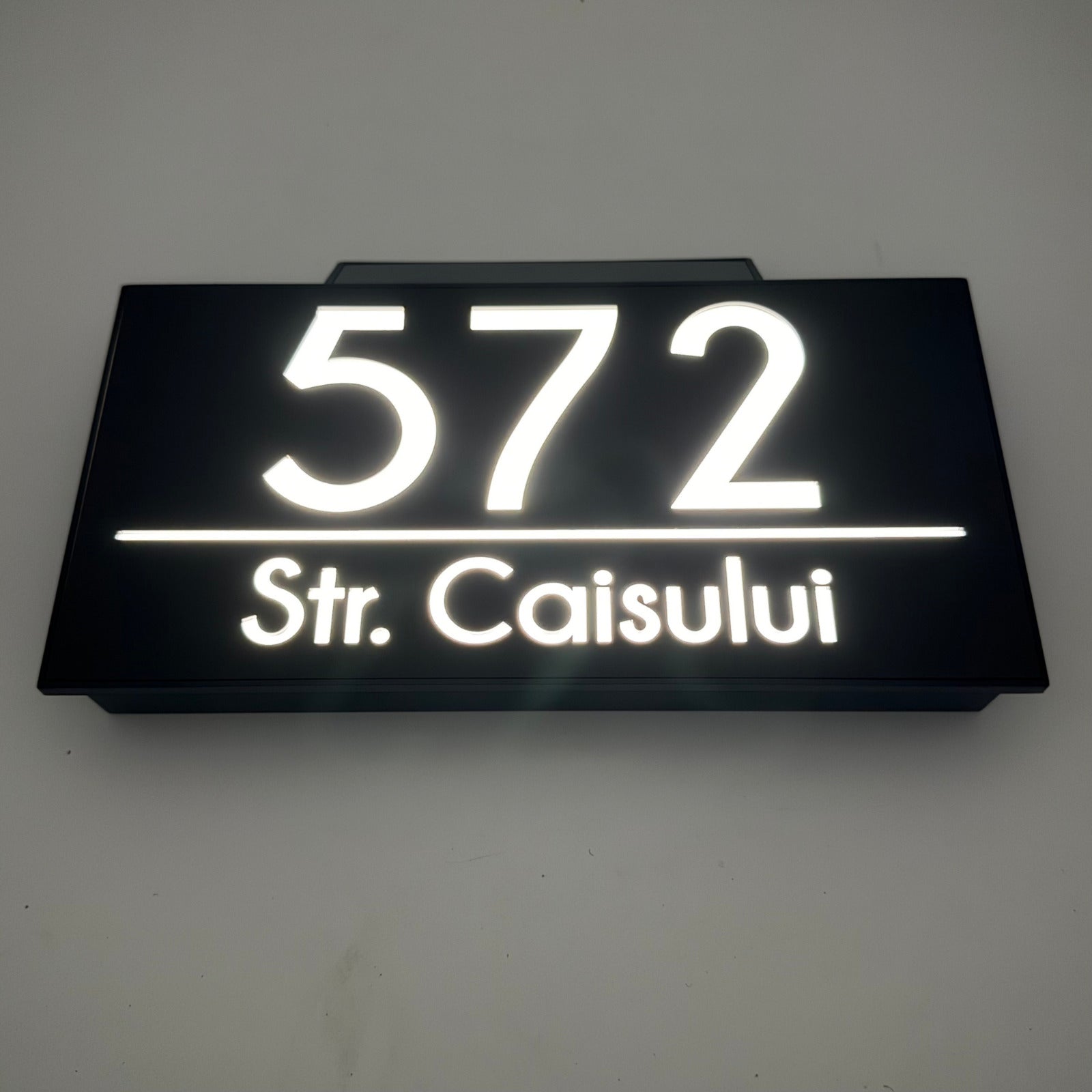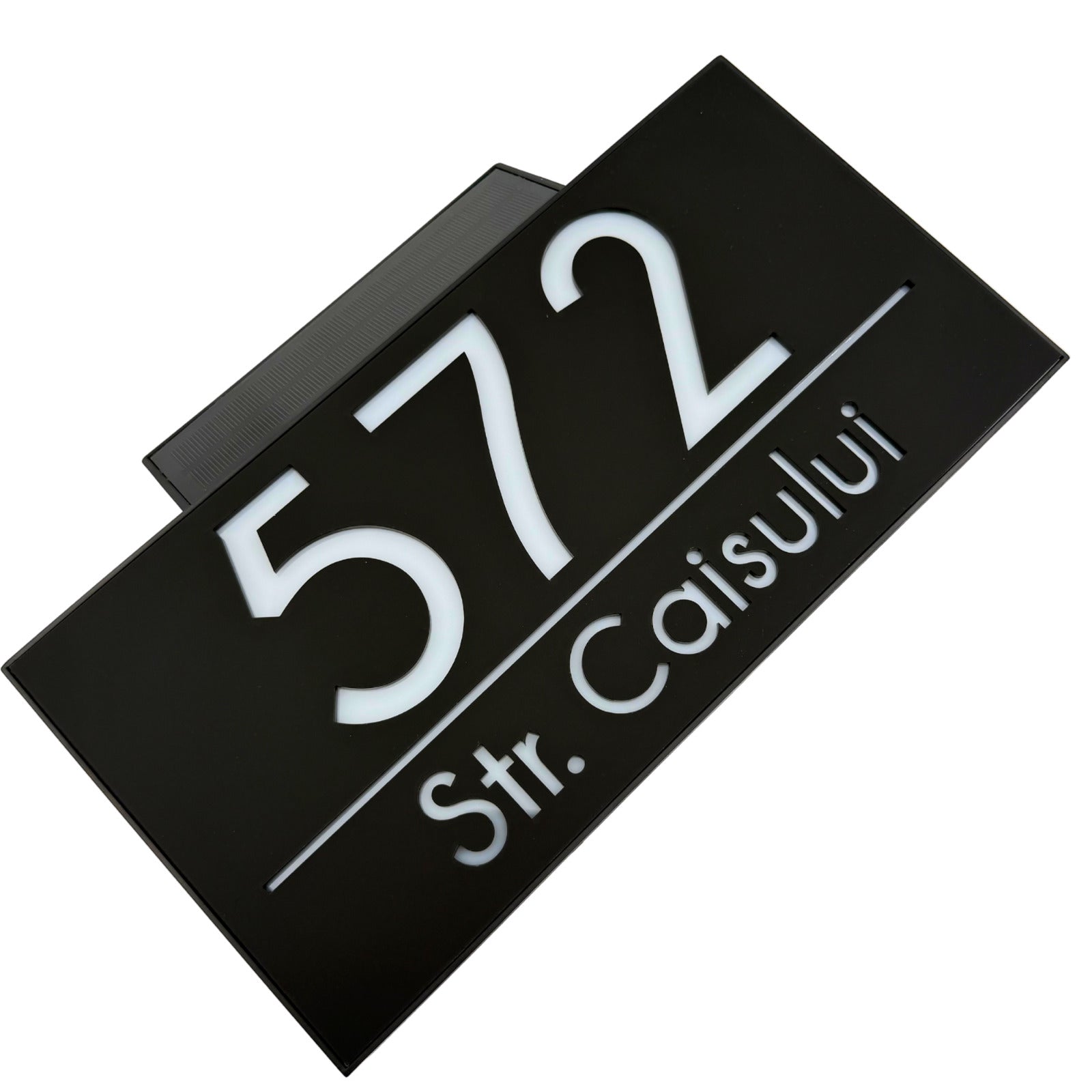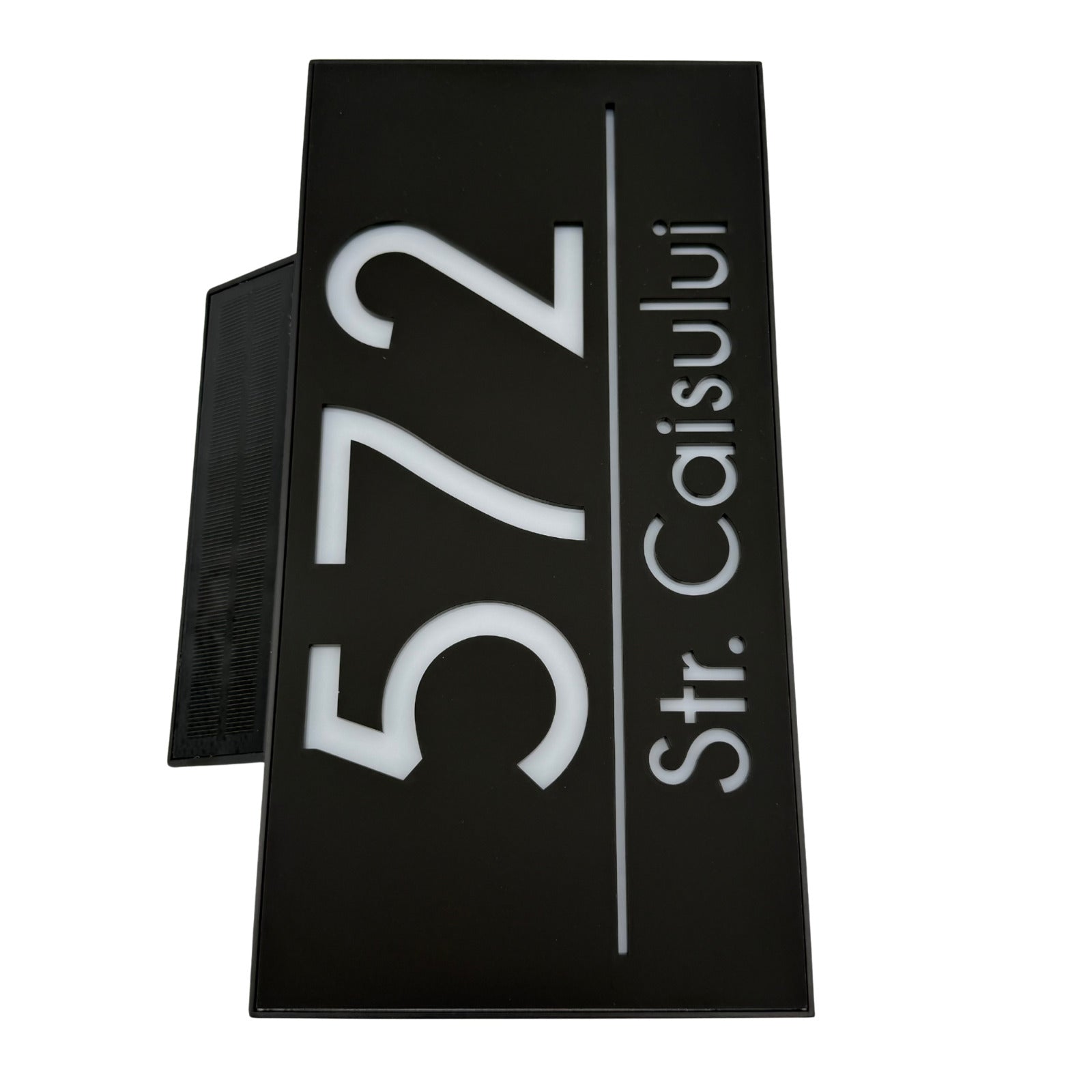 PREMIUM HOUSE NUMBER - Satin Black Solar Led Case - 30×15 cm