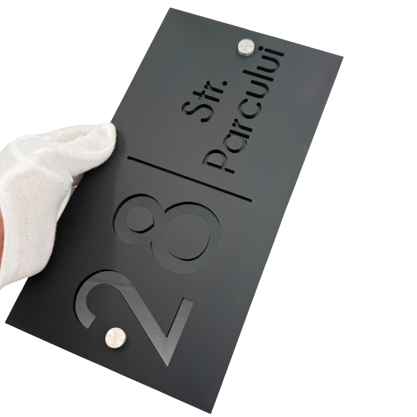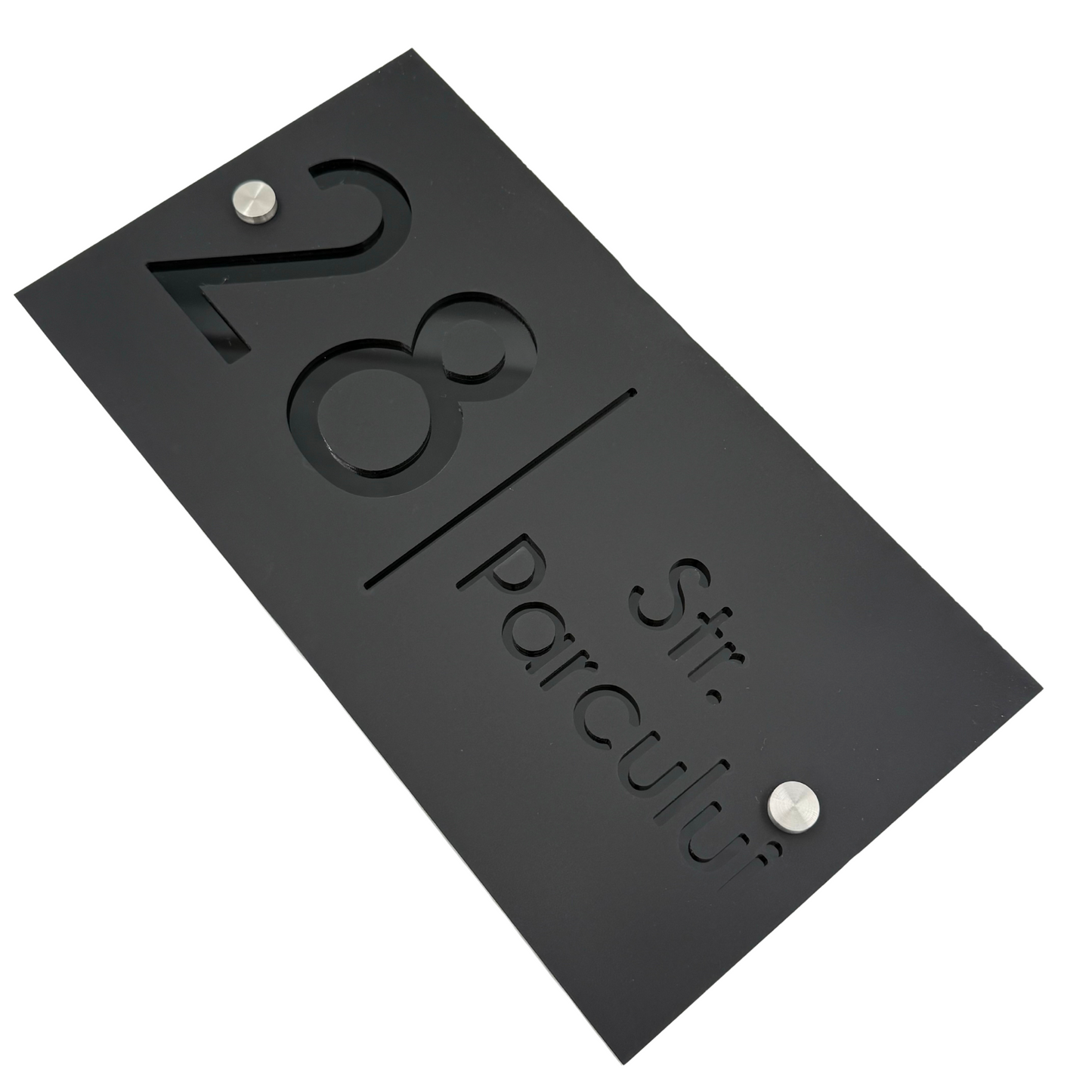 Premium house signs with number and address. Introducing our exclusive house number and address sign to the world of refinement and luxury. Crafted with care and attention to detail, this exceptional piece is a true work of art for your home. Our luxurious sign is made of the highest quality plexiglass, with a thickness of 6 mm, to provide you with unparalleled durability and strength. Each number and address is engraved with precision and care, to create an impressive and sophisticated visual effect. Choose our exclusive house number and address sign and turn your house or fence into a true work of art. With a luxurious design, this piece will add value and style to your home, reflecting your exceptional taste and personality.